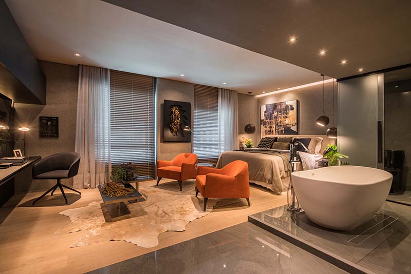 SUÍTE THE VIEW: Essa suíte foi feita com a vista Ponte Estaiada em mente, que faz com que o hospedeiro se sinta em um lugar luxuoso e serio, ideal para visitantes que estão na cidade a negócios, mas não deixa de ser muito lindo para quem quer apenas uma vista linda.