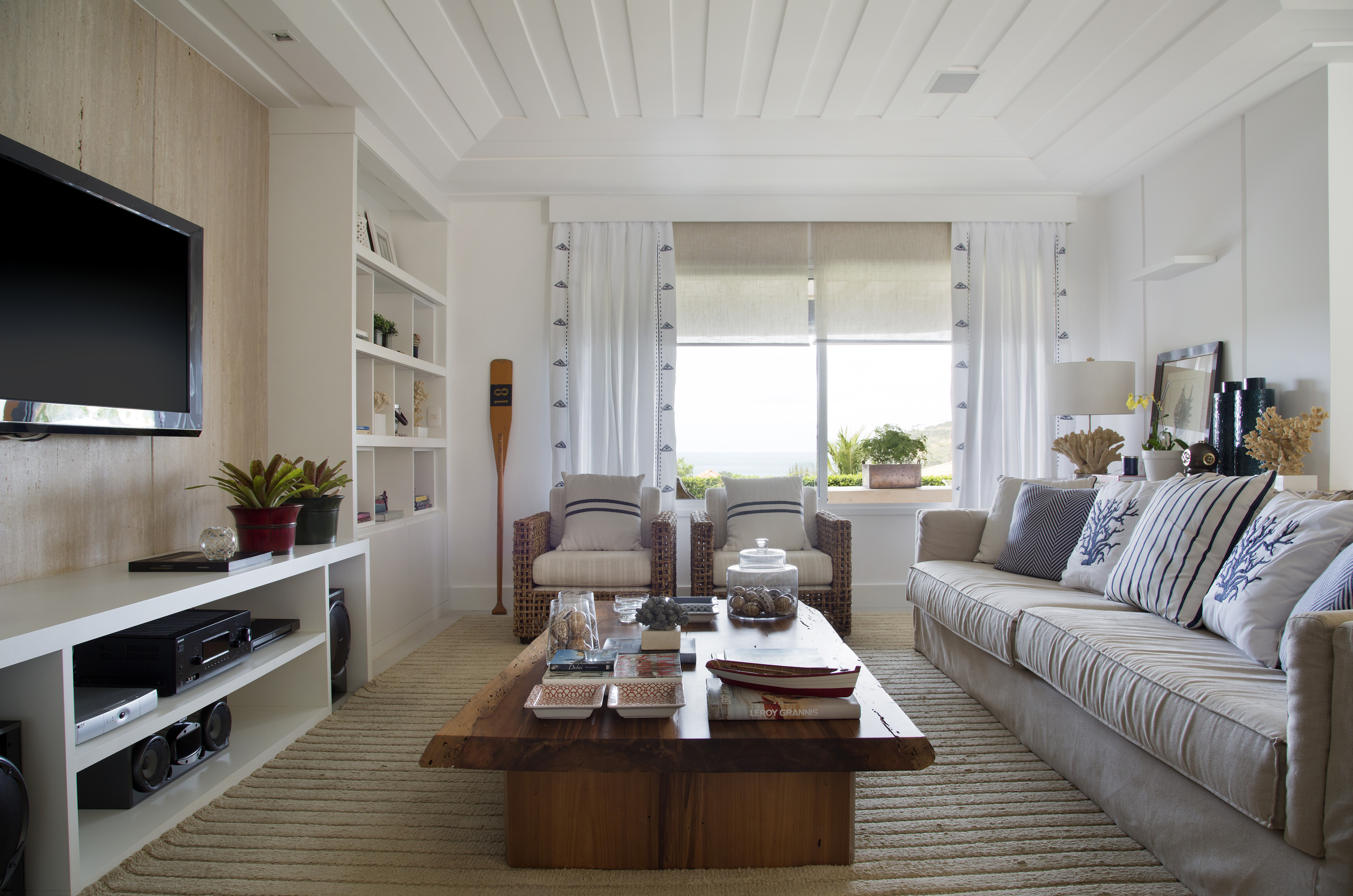 A decoração repleta de referências ao mar, como conchas, remos e formas que lembram barcos por exemplo, é naturalmente bem-vinda, afinal, é certamente o que vai diferenciar sua morada de uma casa convencional. Mas, como vimos, não exagere: tenha bom senso para não sobrecarregar o décor de cores e informações.