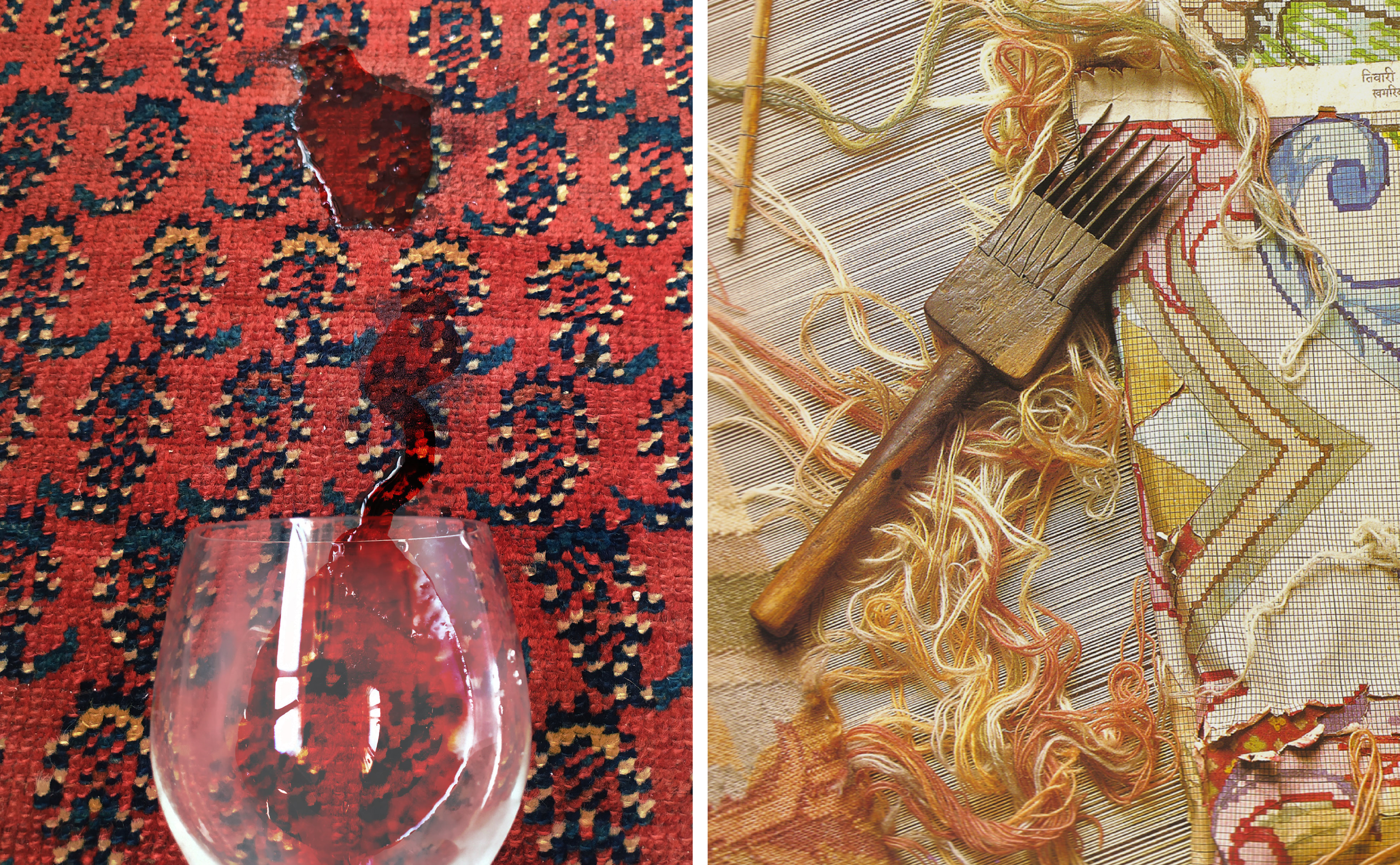 Em qualquer caso de mancha, deve-se efetuar apenas os primeiros socorros (vamos falar mais sobre isso abaixo). Qualquer tentativa caseira de remoção de mancha pode acarretar esgarçamento dos fios e da trama, além de descolorir o local.