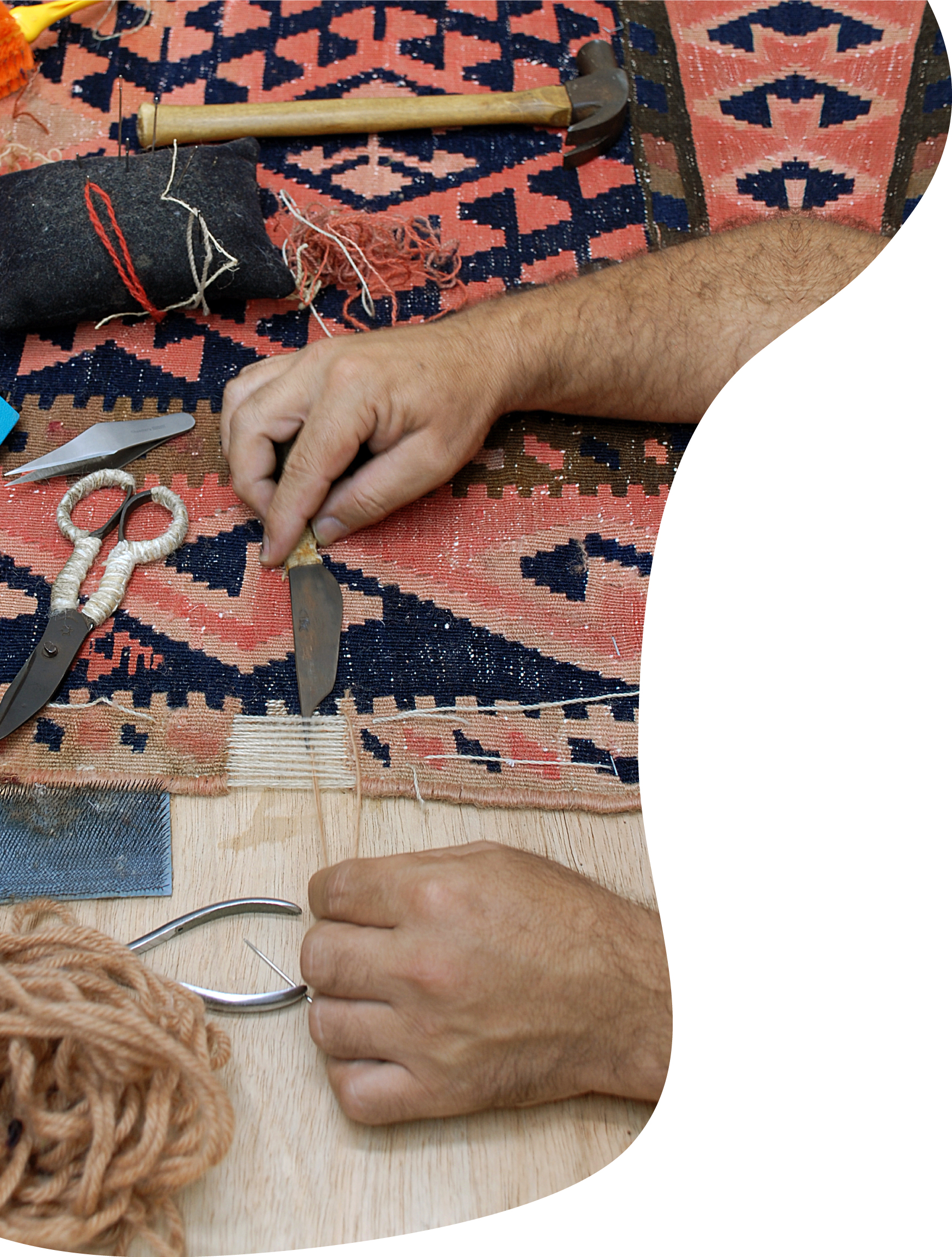 Se o seu tapete está danificado (com partes da trama desfeitas) há duas maneiras de consertá-lo: fazendo enxerto, na qual a parte faltante é preenchida com um retalho de tapete semelhante, ou por meio da restauração, num processo mais demorado, porém de resultado mais eficaz, na qual toda a parte danificada é reconstituída.