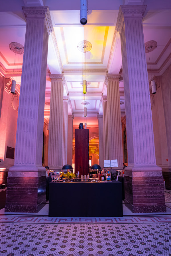 , que surpreendeu a todos com um cardápio sinfônico (dá uma olhada em todos os drinks aqui). Luciano aproveitou as grandiosas colunas da Sala São Paulo para instalá-lo entre elas, o que ficou bem interessante. As luminárias pretas deram um ar sofisticado às produções e arremataram lindamente as garrafas de bebida. Foi neste espaço também que ficou a pick-up de som comandada por Pedro Sabie