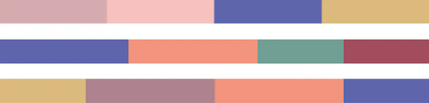 Para nos ajudar encontrar os parceiros ideais para o Very Peri, a própria Pantone realizou um estudo aprofundado das possíveis combinações e chegou quatro a paletas exclusivas, trazendo em cada uma delas com três sugestões de harmonização. Confira:
