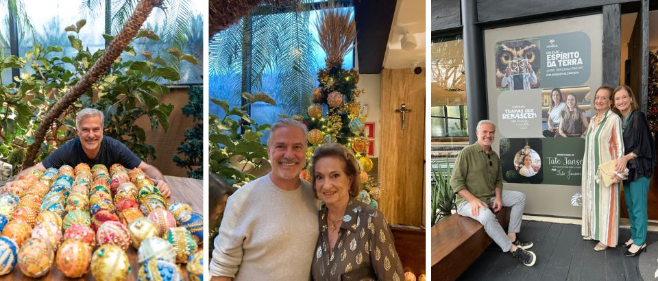 Tal como a vida, o acervo foi crescendo e se modificando. Nas viagens, com o seu olhar voltado para a sua nova fase, Tate foi garimpando miudezas e até peças de bijuteria que se tornariam preciosos enfeites em suas criações – como nas brilhantes bolas da árvore.