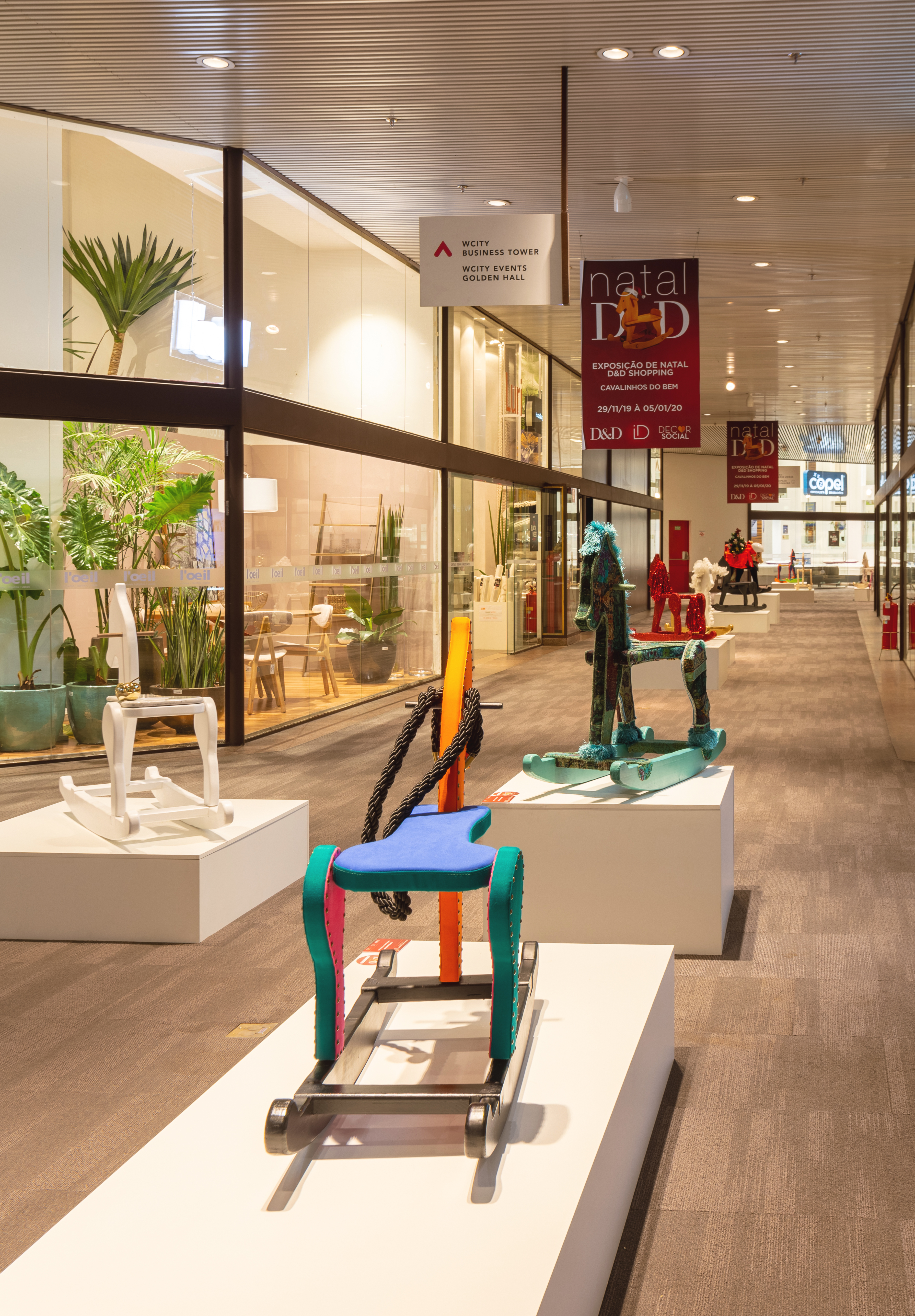 Até o dia 05 de janeiro acontece no shopping D&D a exposição “Cavalinhos do Bem”, que reúne 60 modelos de pequenos cavalos feitos de madeira, customizados por arquitetos, paisagistas e outras personalidades do mercado de decoração. Entre eles, os arquitetos Samia Sarayedine Testa e Antonio e Camila Figueiroa, que desenvolveram peças em parceria com a By Kamy Verde.