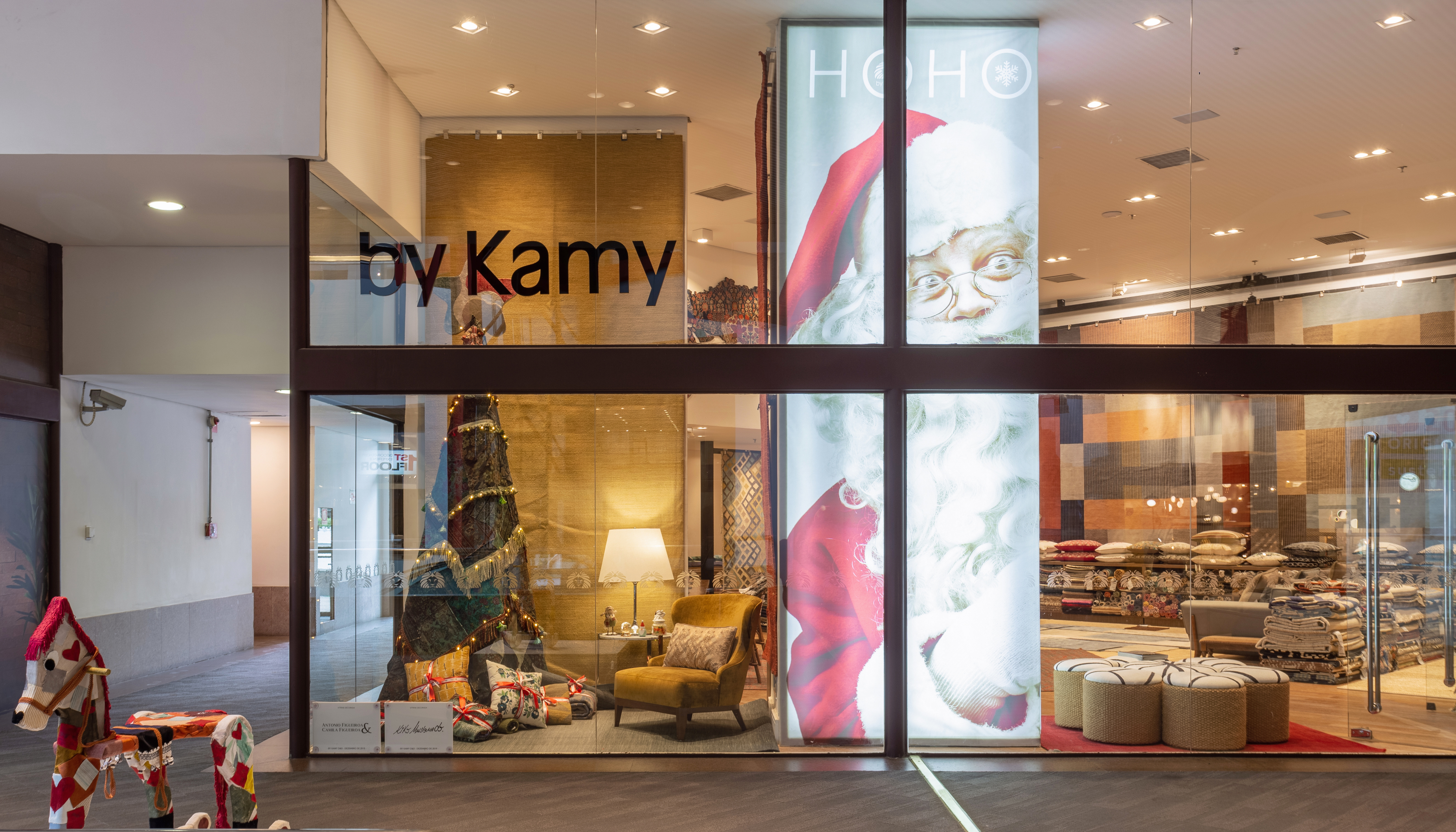 Engajada com a responsabilidade social e regida por valores sustentáveis, a grife de tapetes a By Kamy convidou o artista plástico Kiko Maldonado e os arquitetos Antonio e Camila Figueiroa para assinar as vitrines especiais de Natal, com decorações feitas a partir do reaproveitamento de sobras de tapetes produzidos em seu galpão verde, reafirmando seu compromisso com a sustentabilidade.